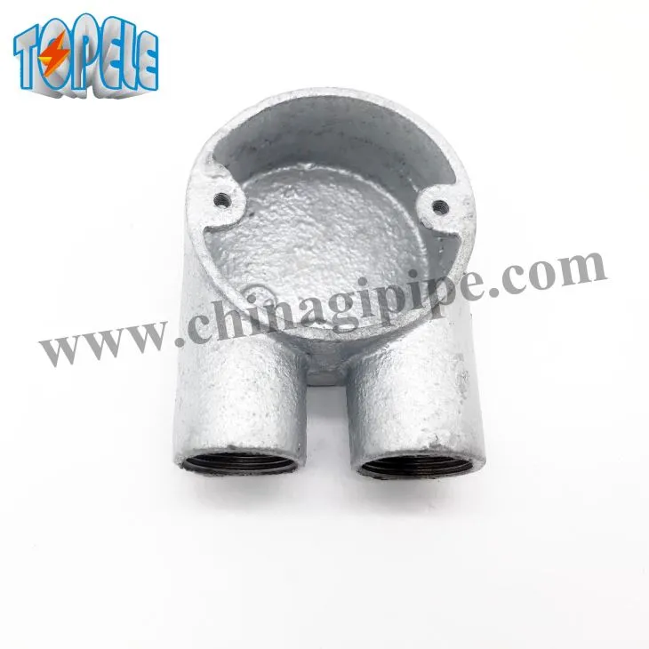 TOPELE bietet runde formbare BS-T-Wege-Kästen an, die eine Kastenstruktur mit einer kreisförmigen Form haben. Dieser Typ ist "Branch Two Way", aus dem höchstens zwei Anschlüsse herausragen. Die verschiedenen Größen, in denen die formbaren Runddosen erhältlich sind, sind 20 mm, 25 mm. Abhängig vom kundenspezifischen Design sind die formbaren runden Kästen normalerweise in schwarz feuerverzinkter und galvanisierter Ausführung erhältlich.